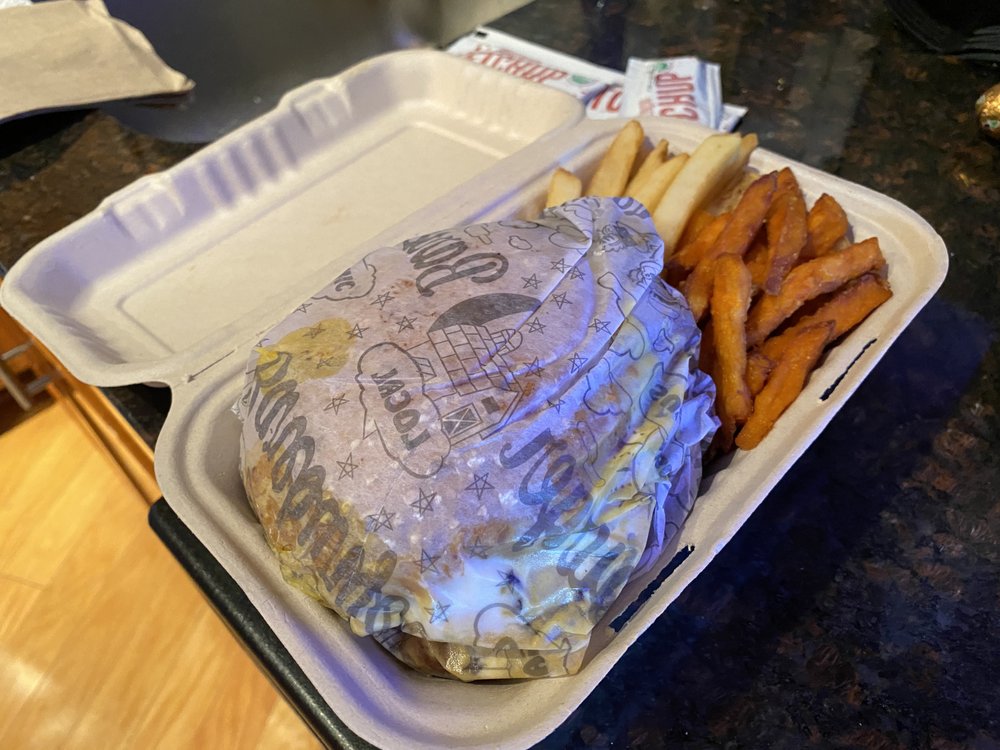 impossible beef, oat milk cheddar, vidalia onion, dill pickle, garlic aioli, potato bun
